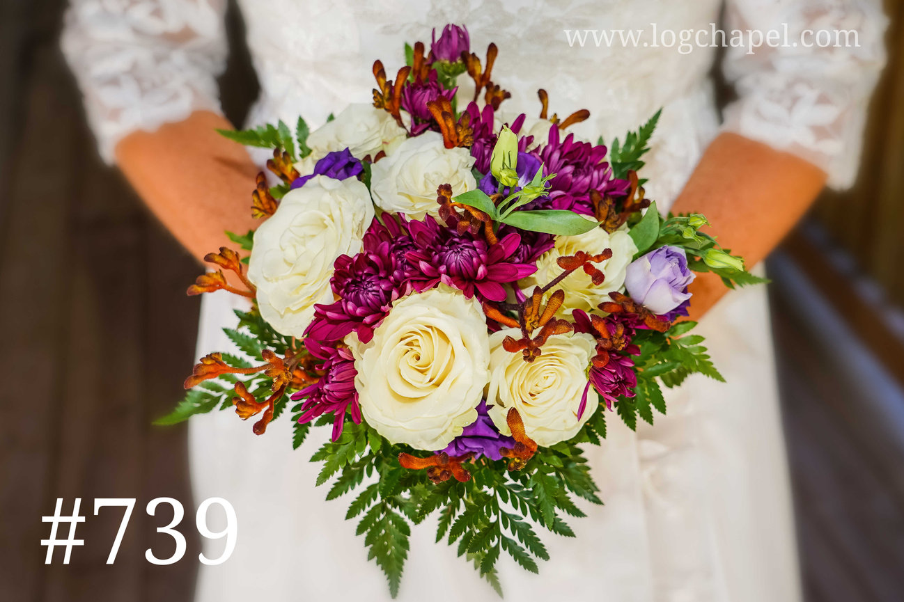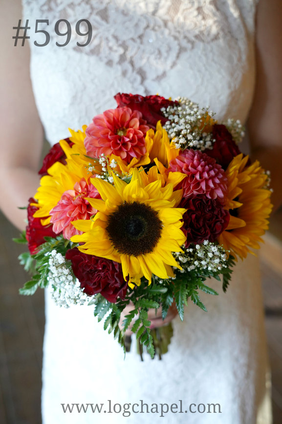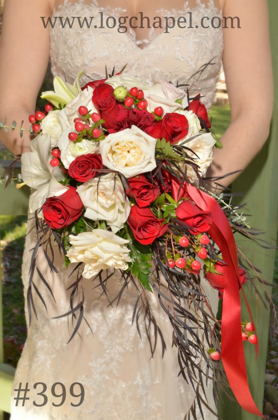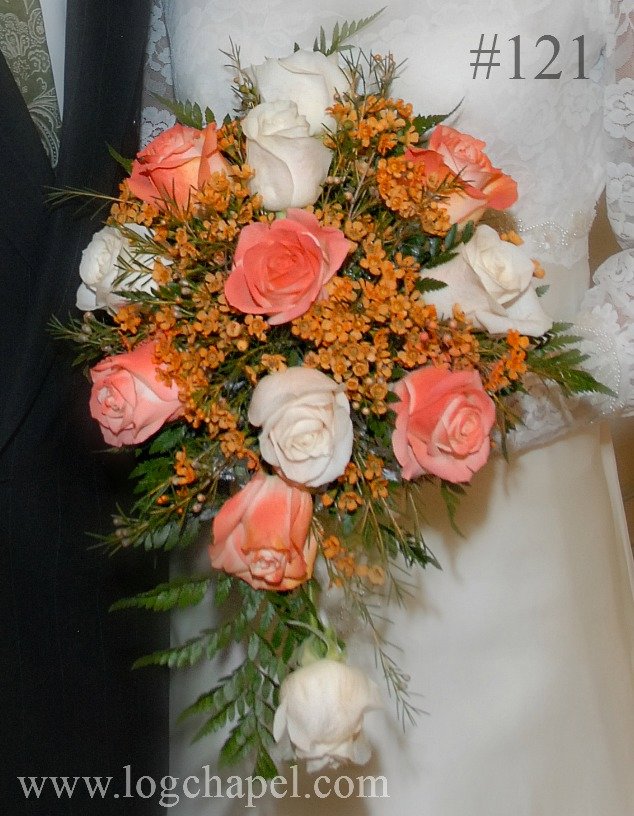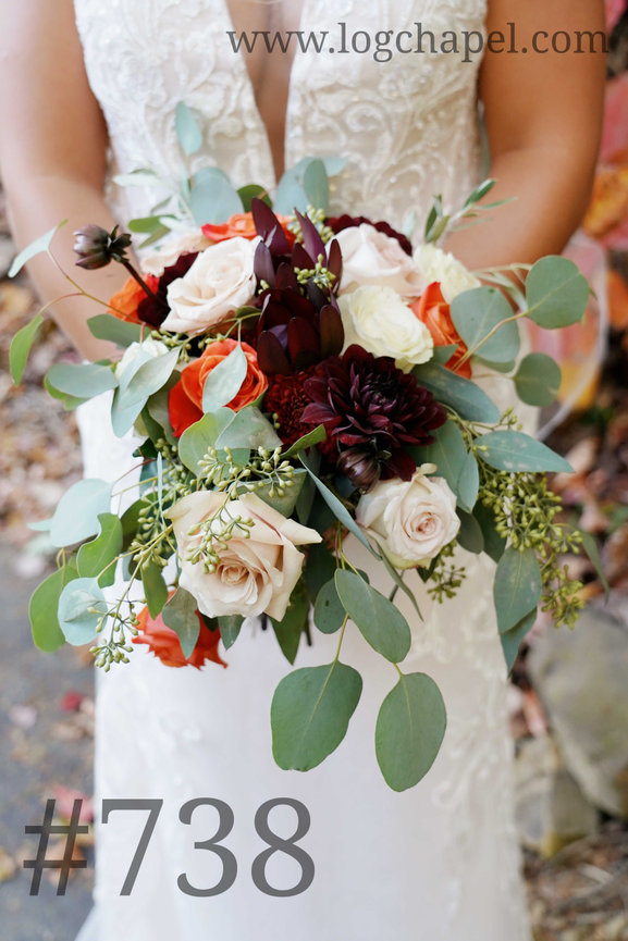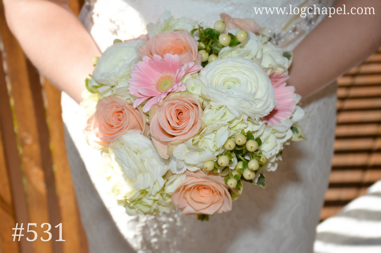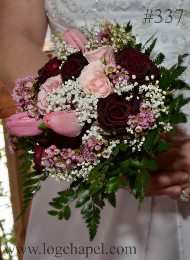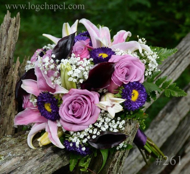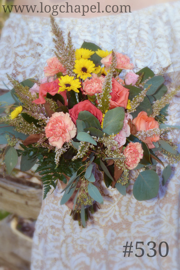 These flowers are to give you an idea of what we offer. These bouquets vary in price and size. Please contact your coordinator or Deirdre at 800-554-1451 or littlelogweddingchapel@gmail.com to get a custom quote. Go to our Facebook Page for even more ideas.
