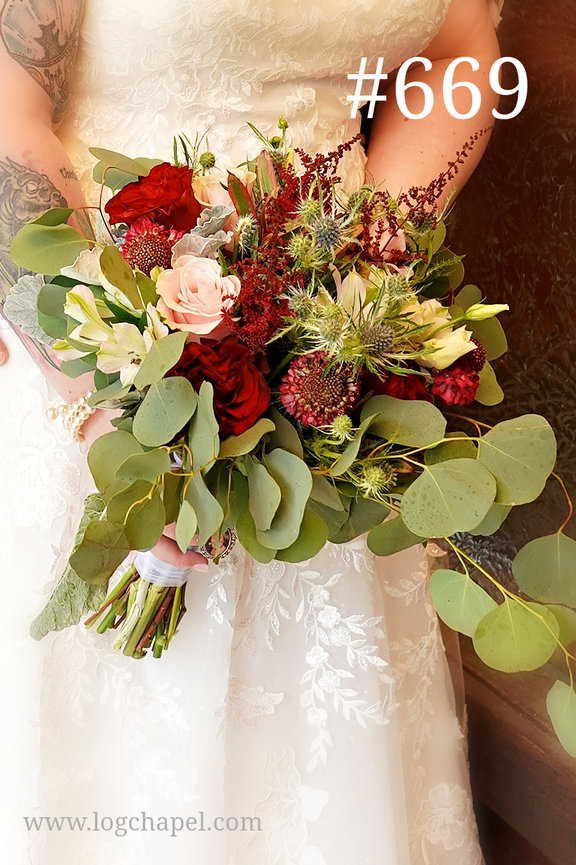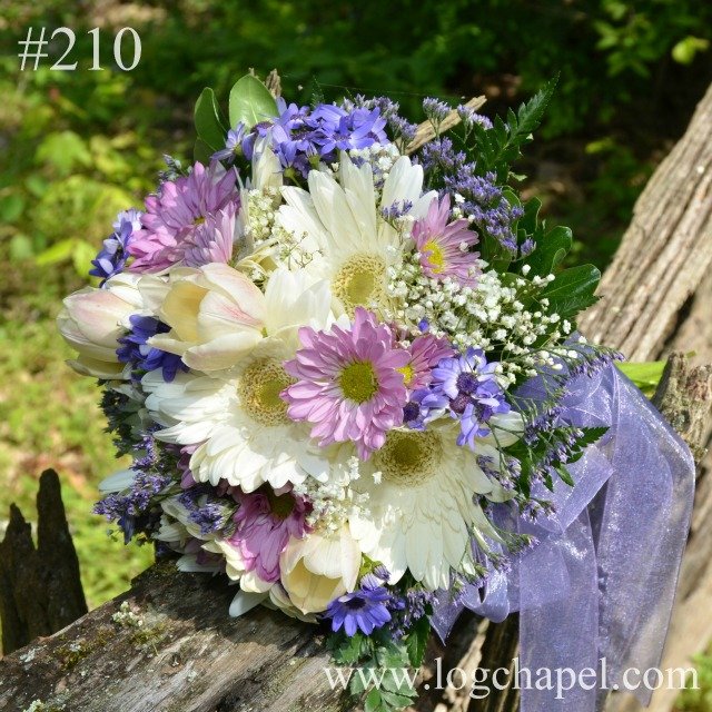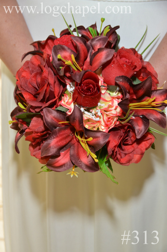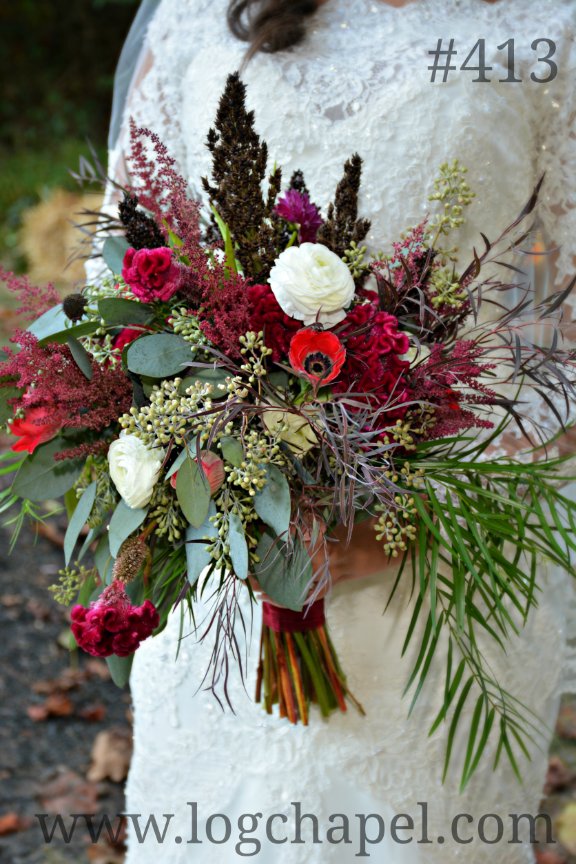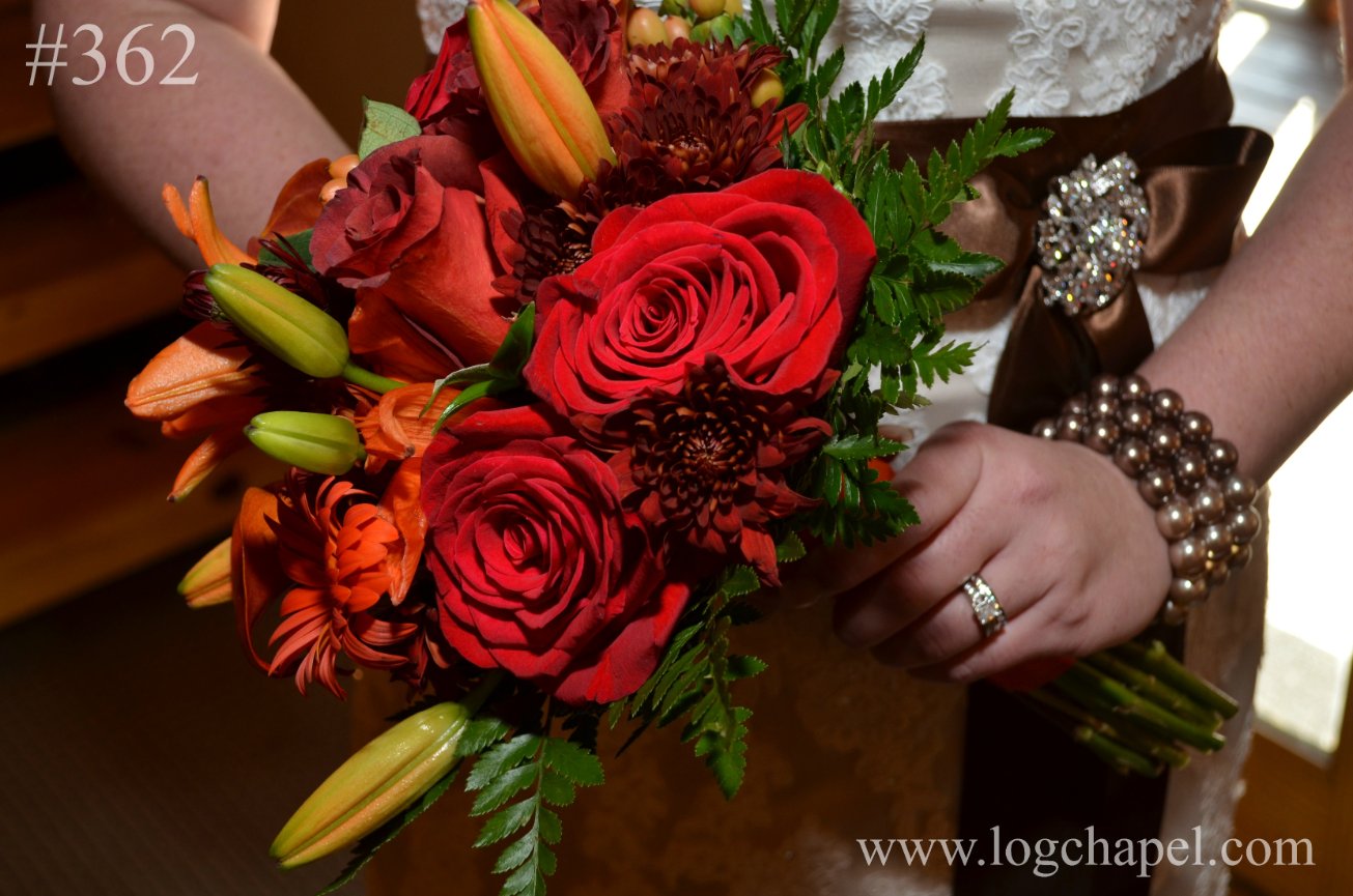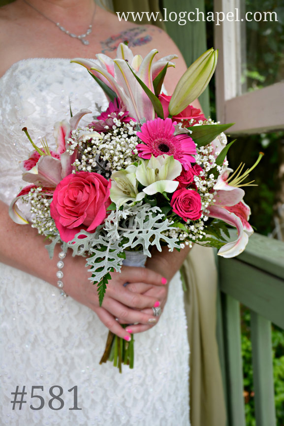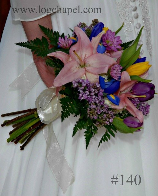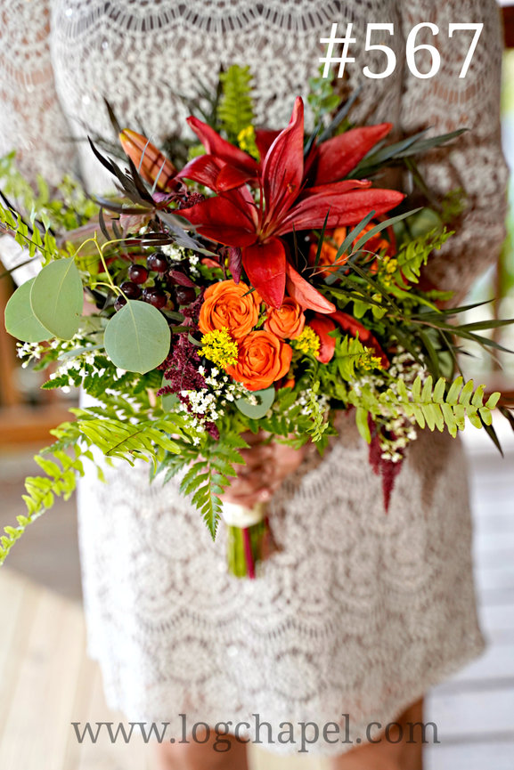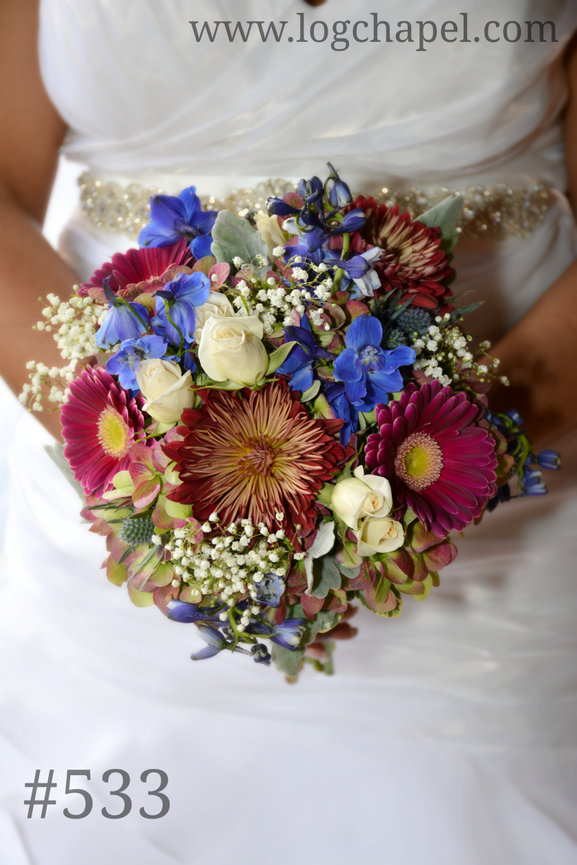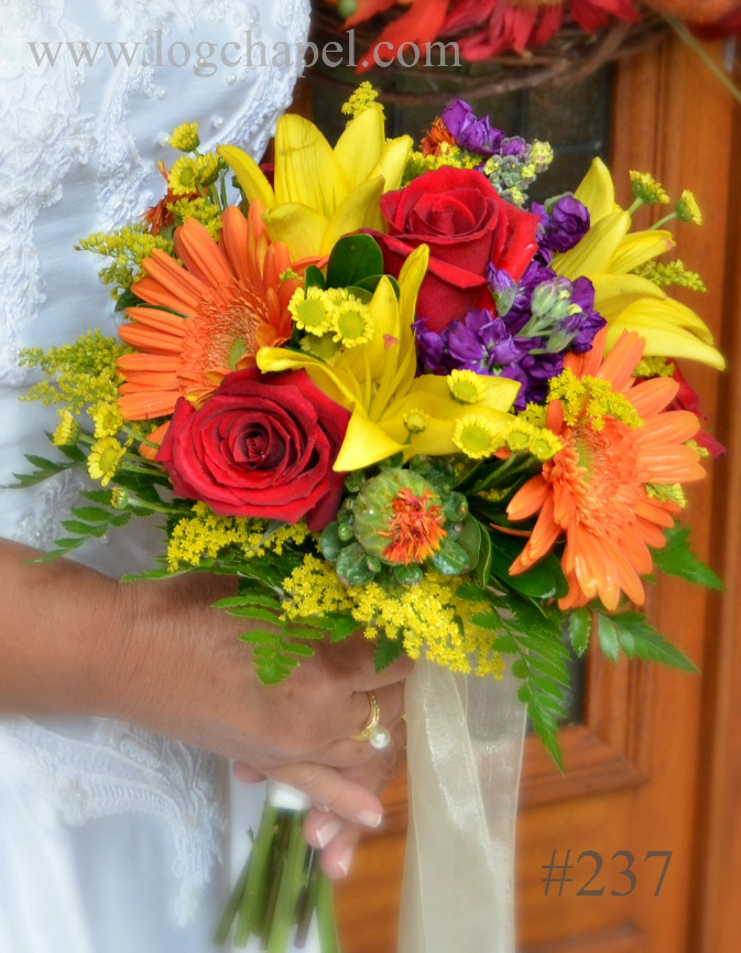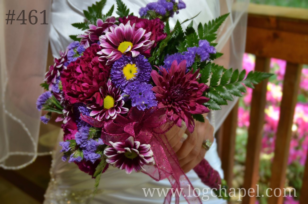 These flowers are to give you an idea of what we offer. These bouquets vary in price and size. Please contact your coordinator or Deirdre at 800-554-1451 or littlelogweddingchapel@gmail.com to get a custom quote. Go to our Facebook Page for even more ideas.