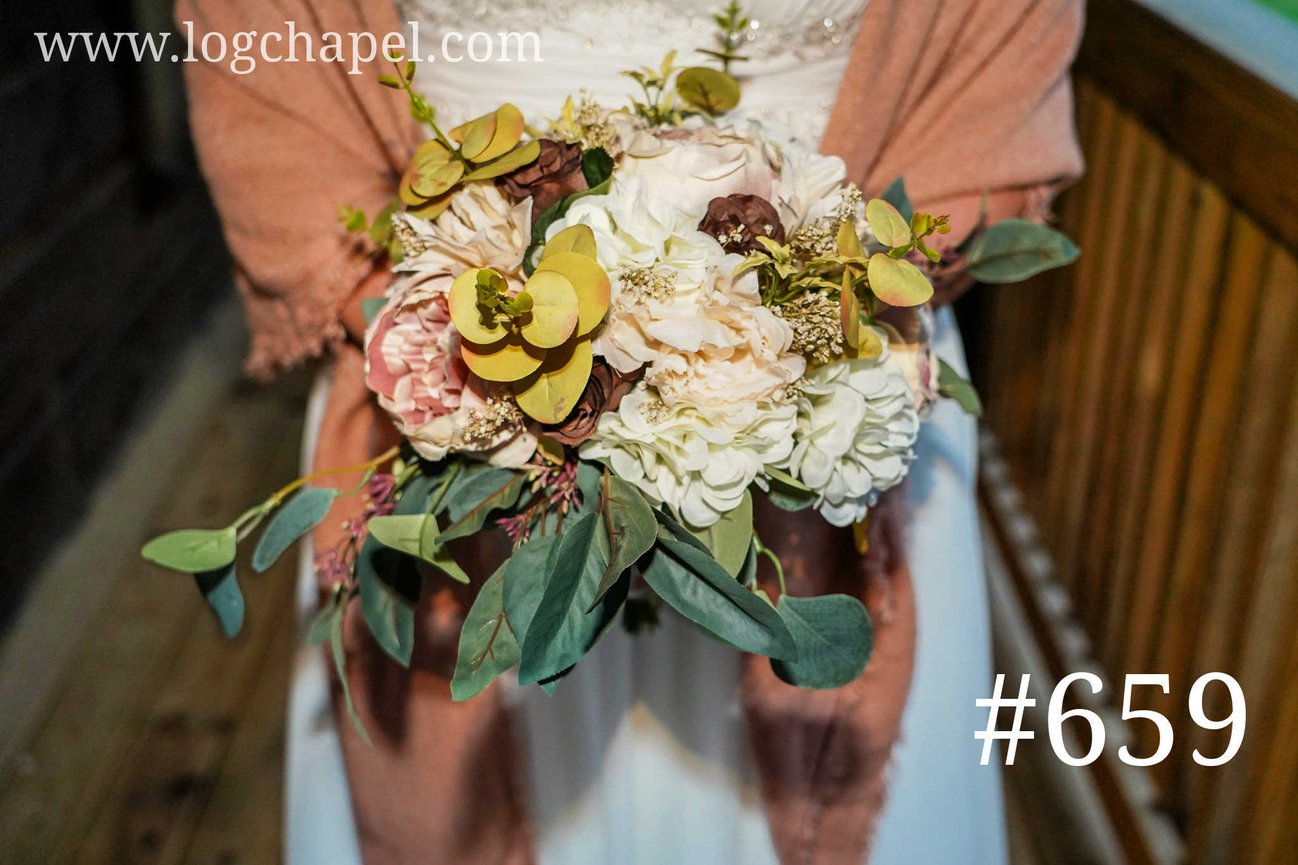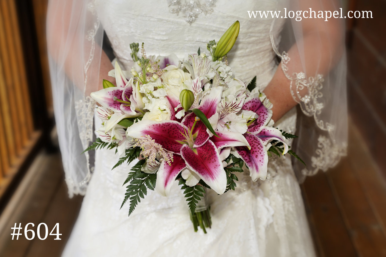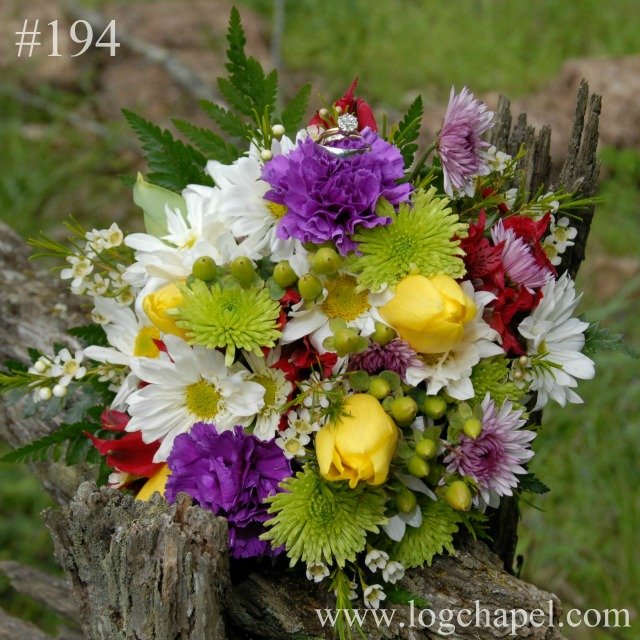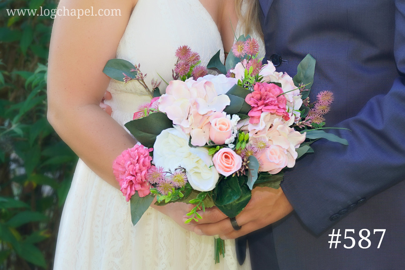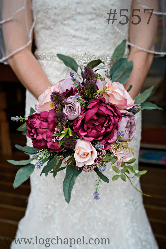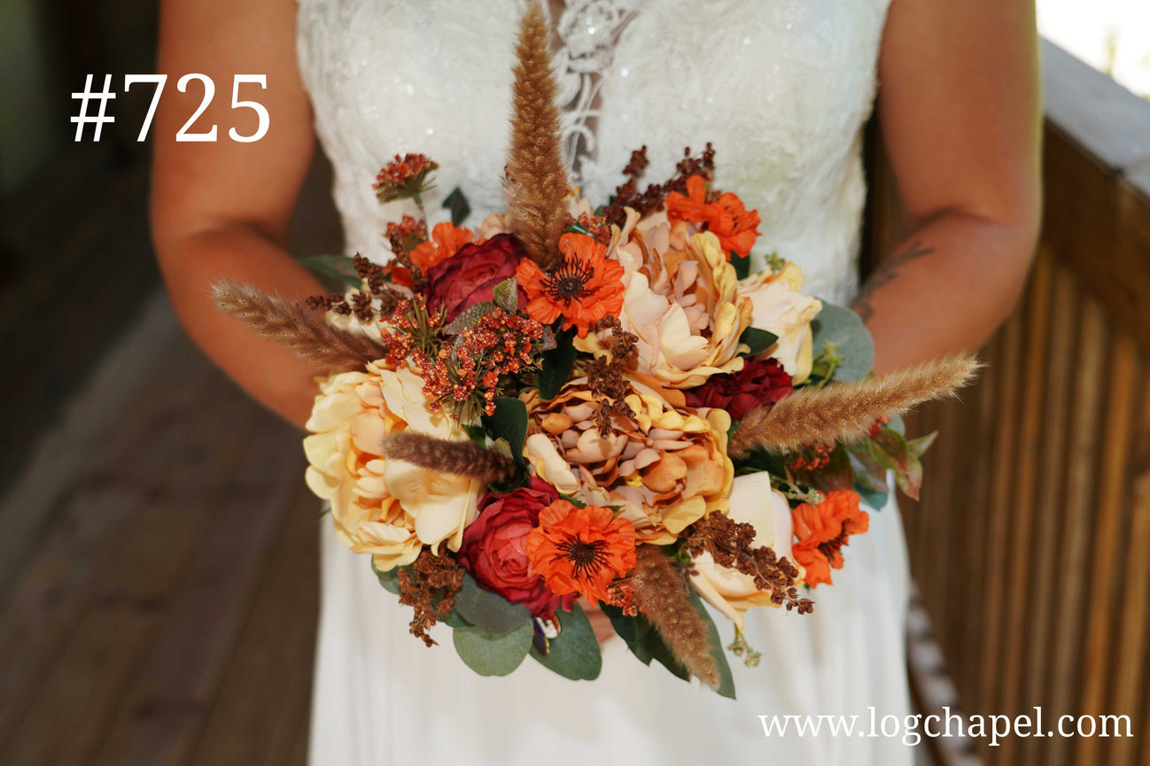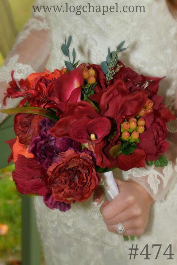 These flowers are to give you an idea of what we offer. These bouquets vary in price and size. Please contact your coordinator or Deirdre at 800-554-1451 or littlelogweddingchapel@gmail.com to get a custom quote. Go to our Facebook Page for even more ideas.