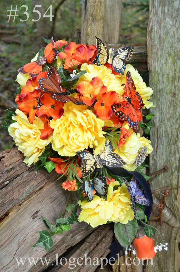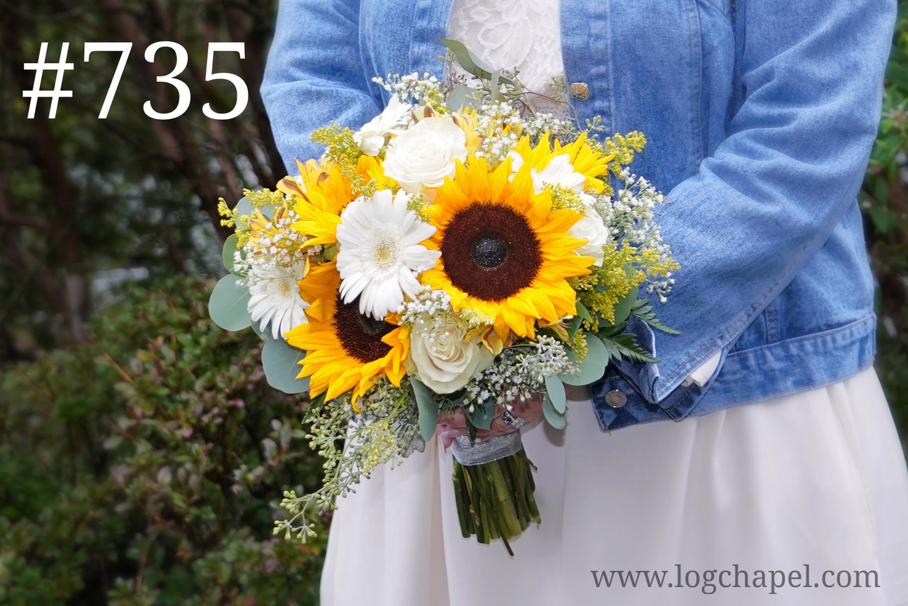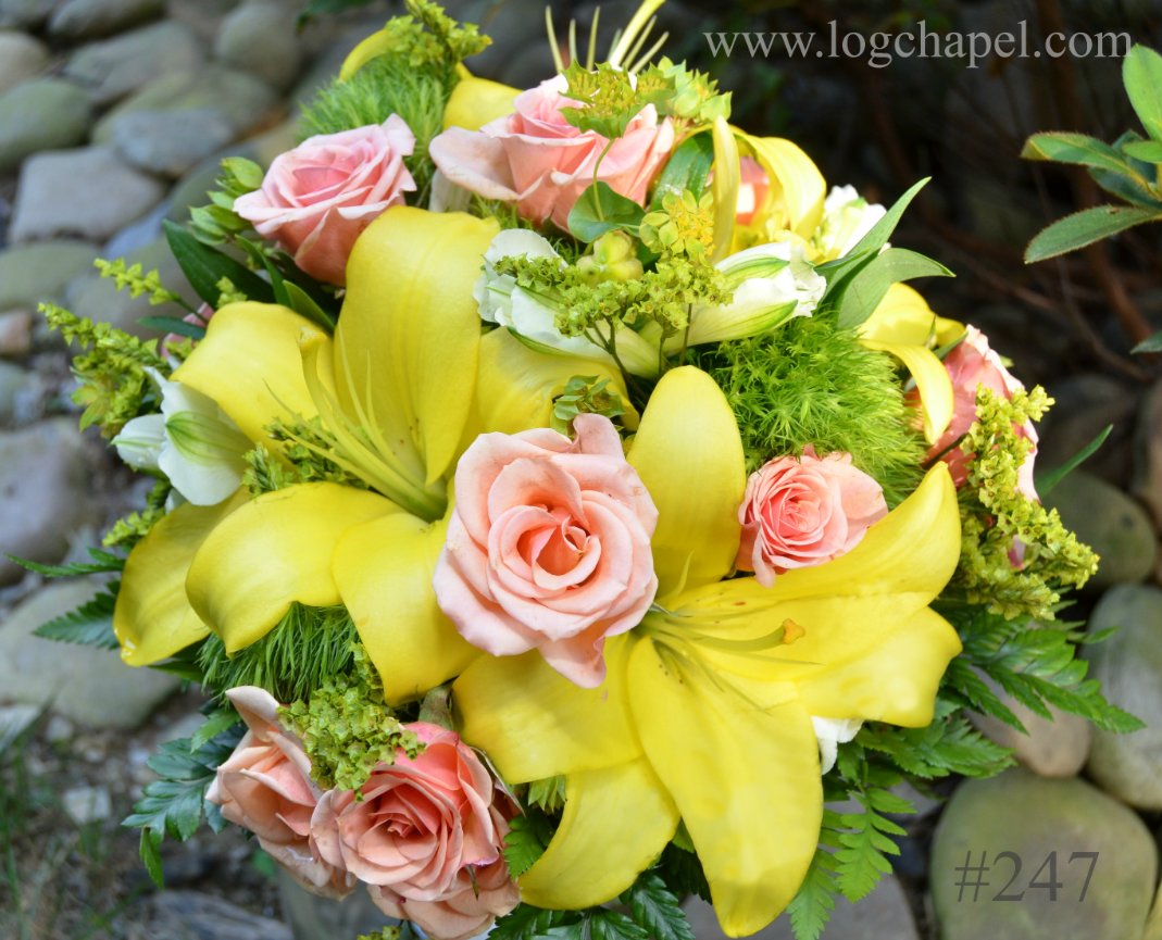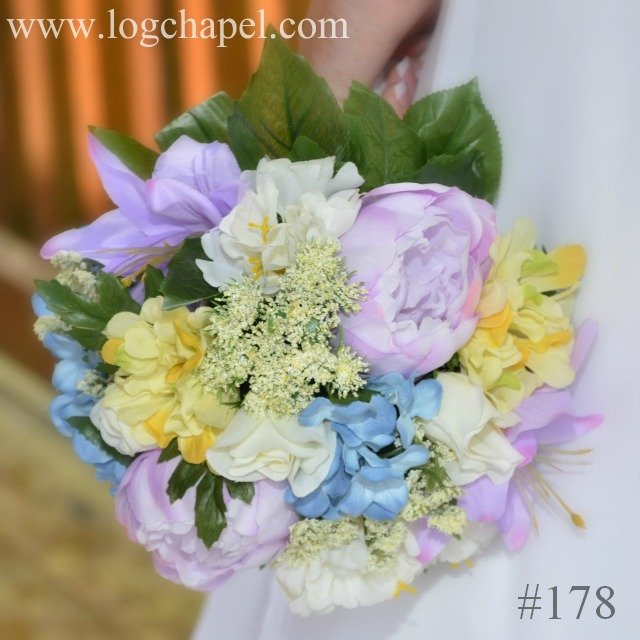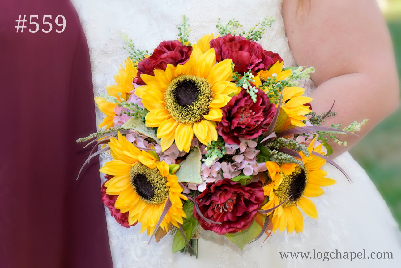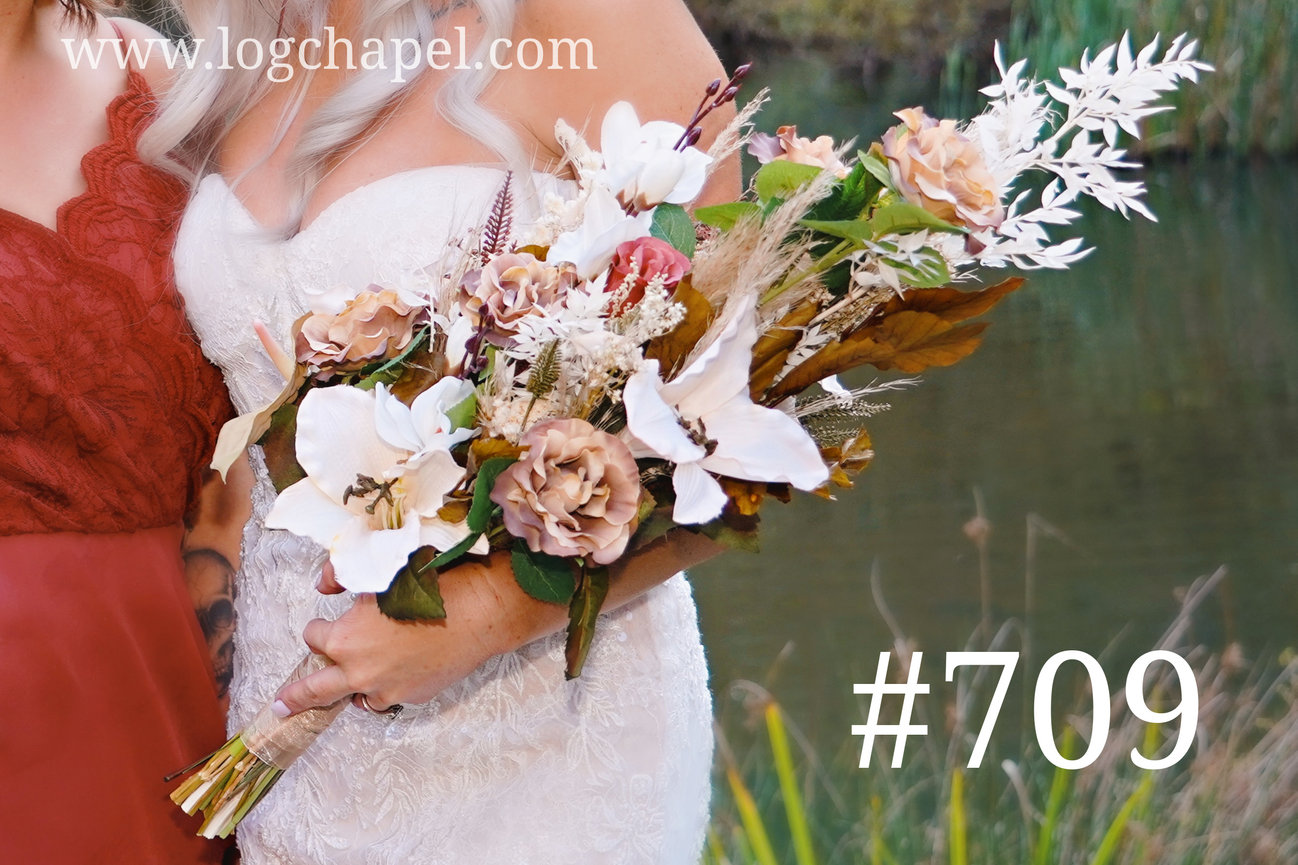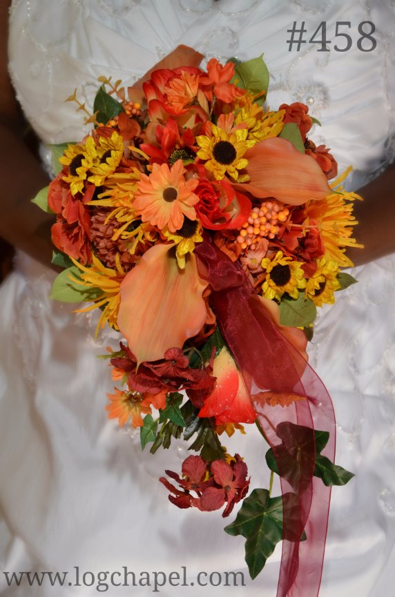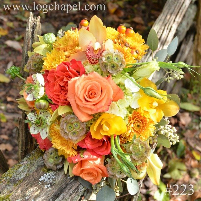 These flowers are to give you an idea of what we offer. These bouquets vary in price and size. Please contact your coordinator or Deirdre at 800-554-1451 or littlelogweddingchapel@gmail.com to get a custom quote. Go to our Facebook Page for even more ideas.
